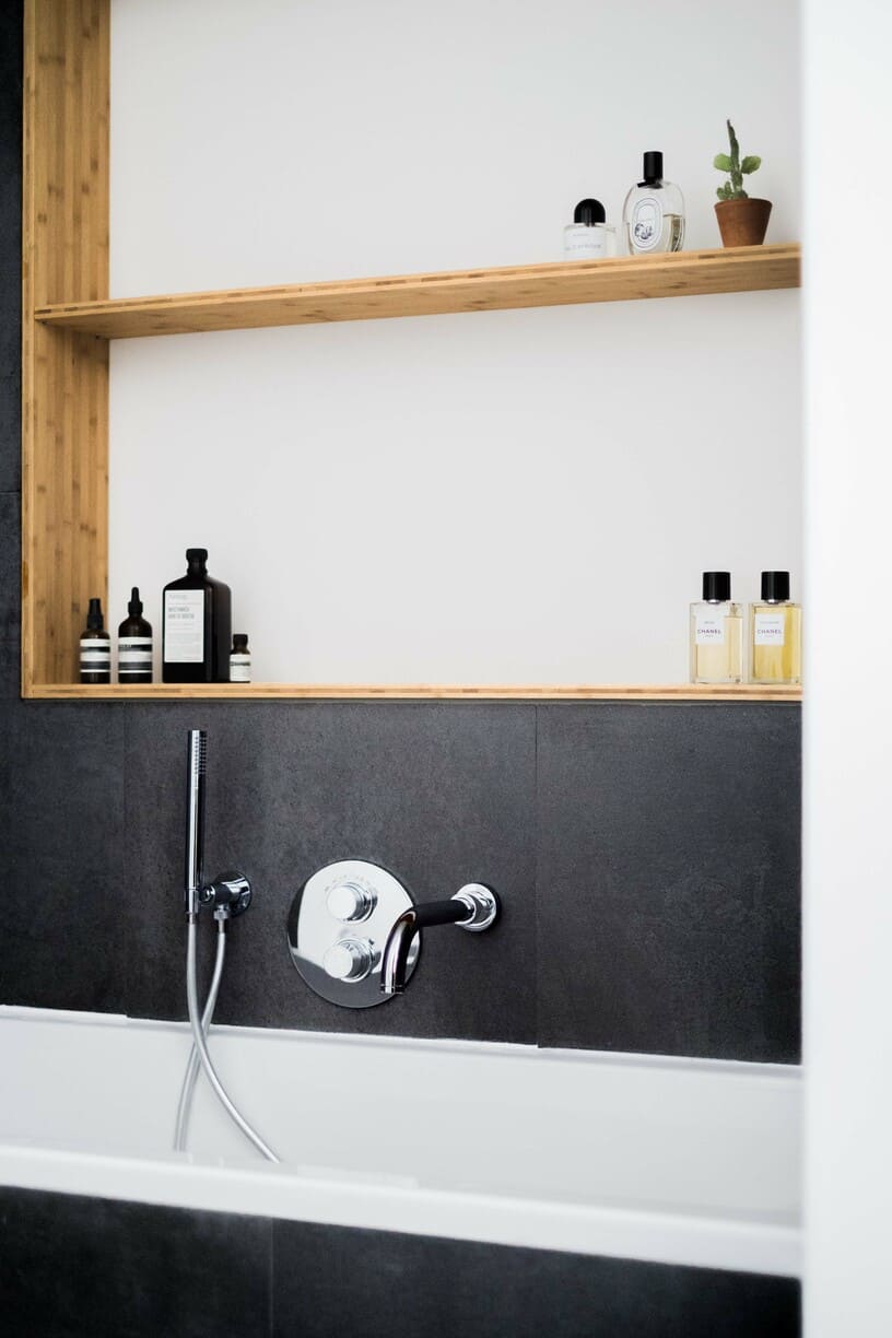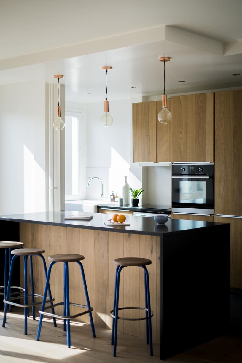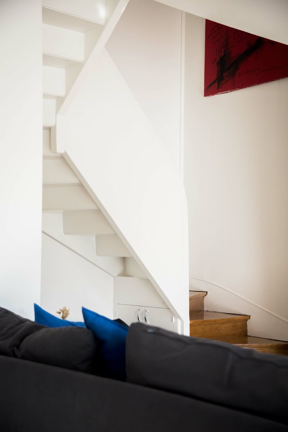 Réhabilitation d'un duplex parisien des années 60 en intérieur contemporain, aux influences industrielles.